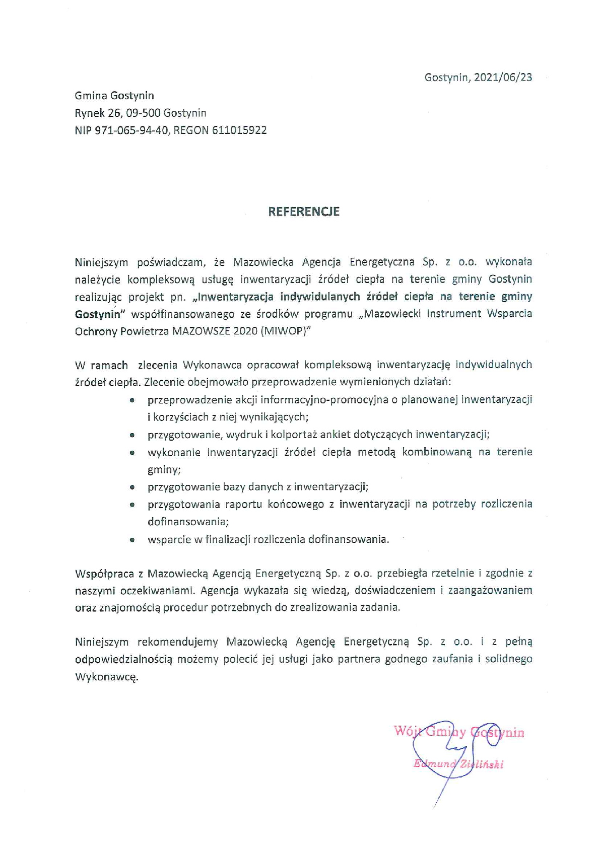 - wykonanie inwentaryzacji źródeł ciepła metodą kombinowaną na terenie gminy;